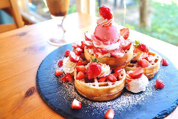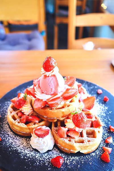 每一個成年男子,都還懷有的一顆微小的少女心,所以一定要點草莓,採用苗栗大湖契作小農新鮮直送的草莓,酸甜剛好,果實飽滿豐碩多汁,搭配手工冰淇淋和滑順的鮮奶油,以及鬆軟的鬆餅一起吃進口裡,馬上讓你掉進滿滿的草莓海,好幸福呀~~~