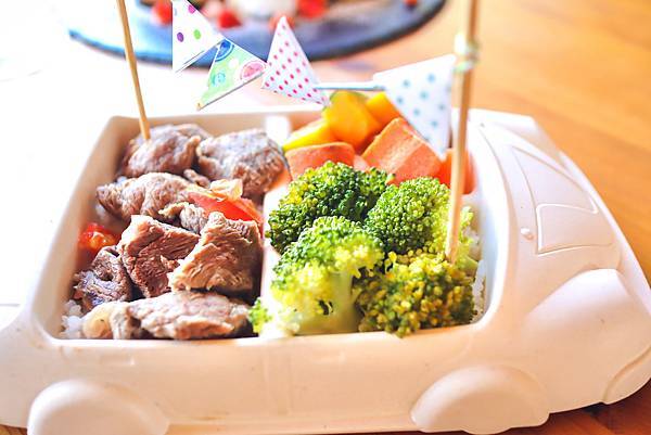 看看陳熊笑得多開心,除了牛肉塊外裡面還有紅蘿蔔塊、南瓜塊和花椰菜,也有白米飯,沒有多餘調味,健康營養均衡滿分!